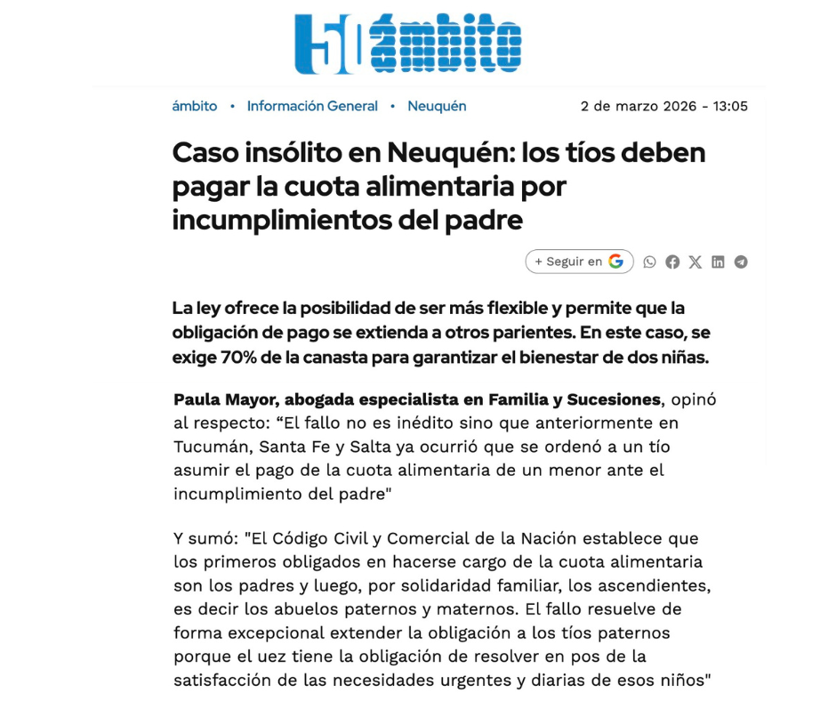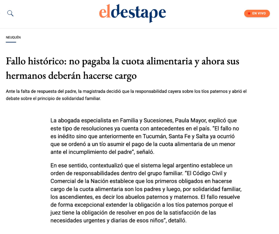 Estudio jurídico Mayor & Asociados Áreas de trabajo Derecho de Familia Sucesiones Contratos Derecho laboral Derecho penal Derecho civil Participación en medios de comunicación Contacto estudio@estudiomayor.com.ar Uruguay 627, Ciudad Autónoma de Buenos Aires